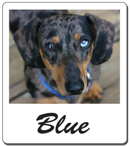Name: Blue Submitted by: Juliana and Mia S. Location: Dallas, GA About: "I'm a 2 year old "dapple" and tan doxie. My