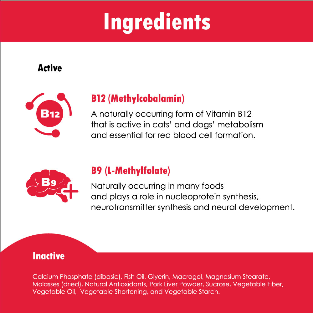 - Supports Digestive Health: Promote a healthy digestive system in small dogs and cats, ensuring efficient nutrient absorption and utilization. Cobalamin may help with digestive issues and improve appetite.