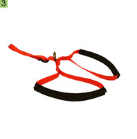 | | 2. Nylon Adjustable Leashes - Traditional leash that easily and quickly attaches to most collars. | 3. Bottom's Up Leash - Patented hind leg harness that supports dogs with dysplasia, arthritis, and other conditions that affect the hind legs/spine.