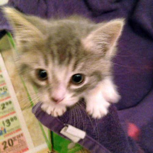 I took a trip with my best friend to her dads. And their cat just had kittens. And I couldn't resist. Delilah was the littlest one. My friend already had someone lined up to take her and I had to make her cancel because I had to have her. She is now nine months old. She loves to hide toys around the house. She is a joy to have around.