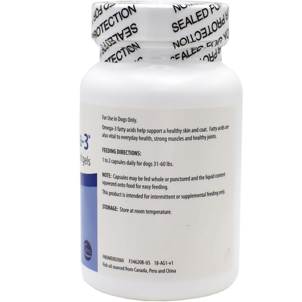 Derma-3 Softgels Capsule is a product line containing Omega-3 fatty acid supplements, including EPA and DHA, Derma-3 also contains vitamins A, D3, and E. Derma-3 may improve and hel maintain skin and coat health in dogs and cats. There are many different products in the line so you should contact your pet's veterinarian for a specific product and dose.