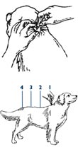 - The dog should be standing for easy application. Part the hair between the dog's shoulder blades on his/her back until the skin is visible. Place the tip of the tube on the skin and squeeze the tube twice to expel the entire contents directly on the skin. Do not get this product in your pet's eyes or mouth.