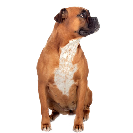 The Boxer is a breed developed in Germany and originally used as a hunting dog on large wild game. Its powerful jaws and bite allowed it hold down boars and deer until the hunters arrived. Boxers are energetic, fun loving, extremely loyal, and low maintenance. They are harmless to family members but can be wary of strangers. This makes them good watchdogs, as they often will alert their owners when there is a stranger near their home. These faithful and affectionate dogs love to be outdoors.