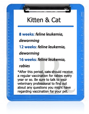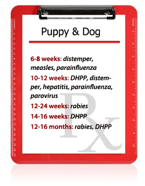 Both dogs and cats have set vaccination schedules recommended by veterinary professionals. You may notice that a few vaccinations, such as those for rabies and DHPP, tend to be repeated in the vaccination schedule throughout the years. This is because these diseases tend to be quite powerful and your dog can constantly be exposed to them without consistent, proper vaccination.