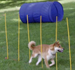 An obstacle course is a fantastic way to stimulate your dog both physically and mentally. Find objects like cones, branches, chairs, or balls and set up an obstacle course in your yard somewhere. As you go through the course, your dog will follow and jump around the obstacles. After doing a couple of runs, give your dog a treat. The more varied and elaborate you make the course, the more fun both of you will have.