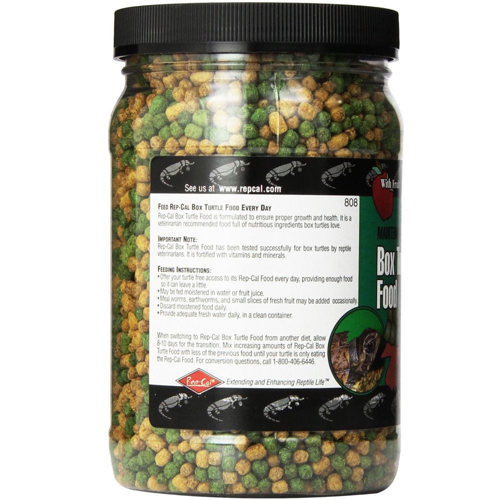 Rep-Cal Box Turtle Food is formulated to ensure proper growth and health by providing complete and balanced nutrition. It is a veterinarian recommended food full of nutritious ingredients box turtles love and provides the 100% complete daily nutrition they need. Rep-Cal Box Turtle Food has been tested successfully for box turtles by reptile veterinarians. It is fortified with optimal levels of vitamins and minerals like calcium and vitamin D3 so no other food or supplements are required.