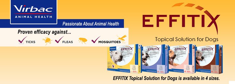 Effitix for Dogs provides effective, long-lasting protection from pests, including fleas, ticks, mosquitoes, lice and mites. By combining the pest killing action of fipronil and the repellency of permethrin, Effitix for Dogs starts working as quickly as 10 minutes after application. The easy to apply applicators come in varieties suited for dogs of all sizes. Protect your dog with Effitix today!