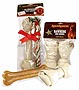 | Merrick - These bones will make your dog salivate just by seeing them. Once they take a bite into these all-natural bones, they will be occupied by endless chewing fun for hours. | | | Raw Hide Dog Treats - These raw hide dog bones are great for all pets! Their line of bones are top notch, it's made extremely durable. It also features a meaty-scent that pets love. | | | Dingo Brand Bones - No dog can resist the aroma of chicken breast jerky wrapped in the highest quality rawhide. Give your dog the bone that will make other dogs wanting to join in on the chewing fun. | | | Holiday Porkhide Bones - Just in time for the holidays, Ranch Rewards Holiday Bones combines red, white and green porkhide to create a candy cane feeling. A great holiday gift for dogs, these bones will bring Christmas early for your dog. | | |
