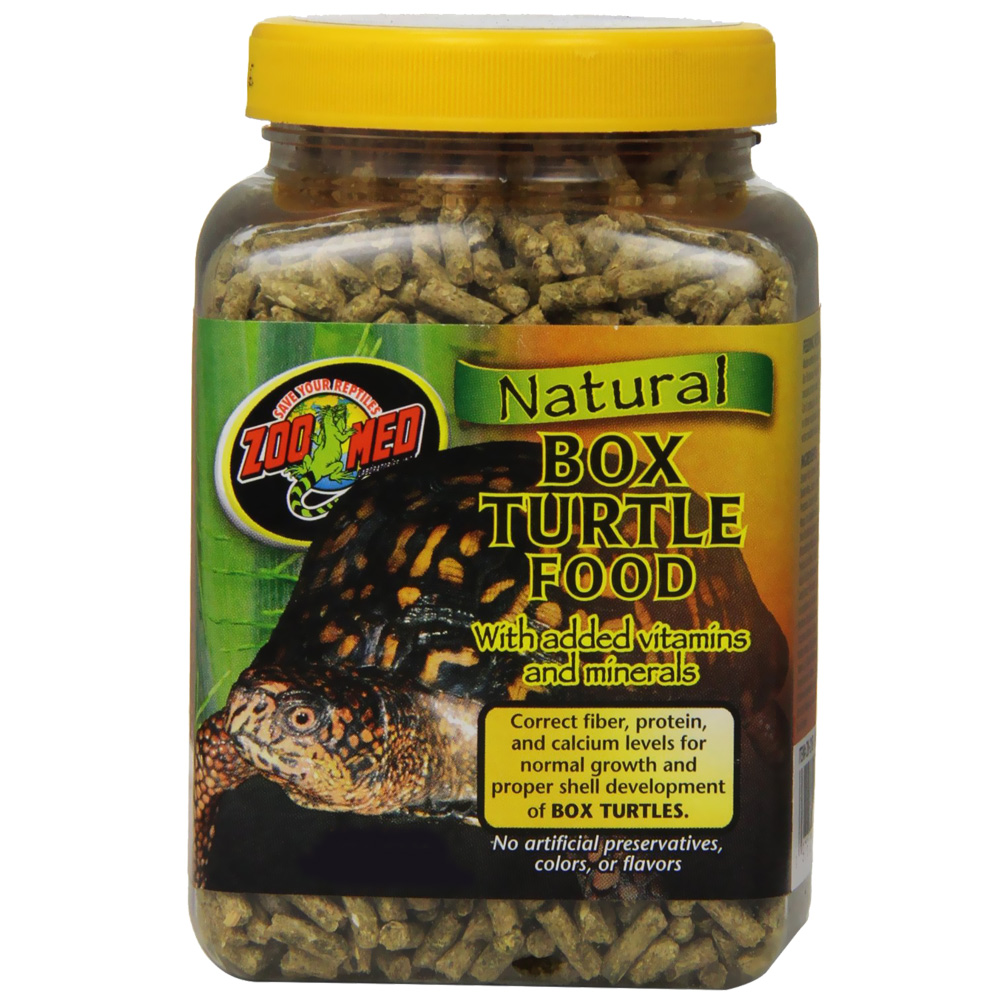 Zoo Med's new Natural Box Turtle Food with added vitamins and minerals contains the correct fiber, protein, and calcium levels for normal growth and proper shell development. This new food contains small amounts of papaya and mango as well as animal protein necessary to meet the unique dietary requirements of Box Turtles. It also contains a variety of nutritious plants that your Box Turtles will love! This new food contains no artificial colors, flavorings, or preservatives.